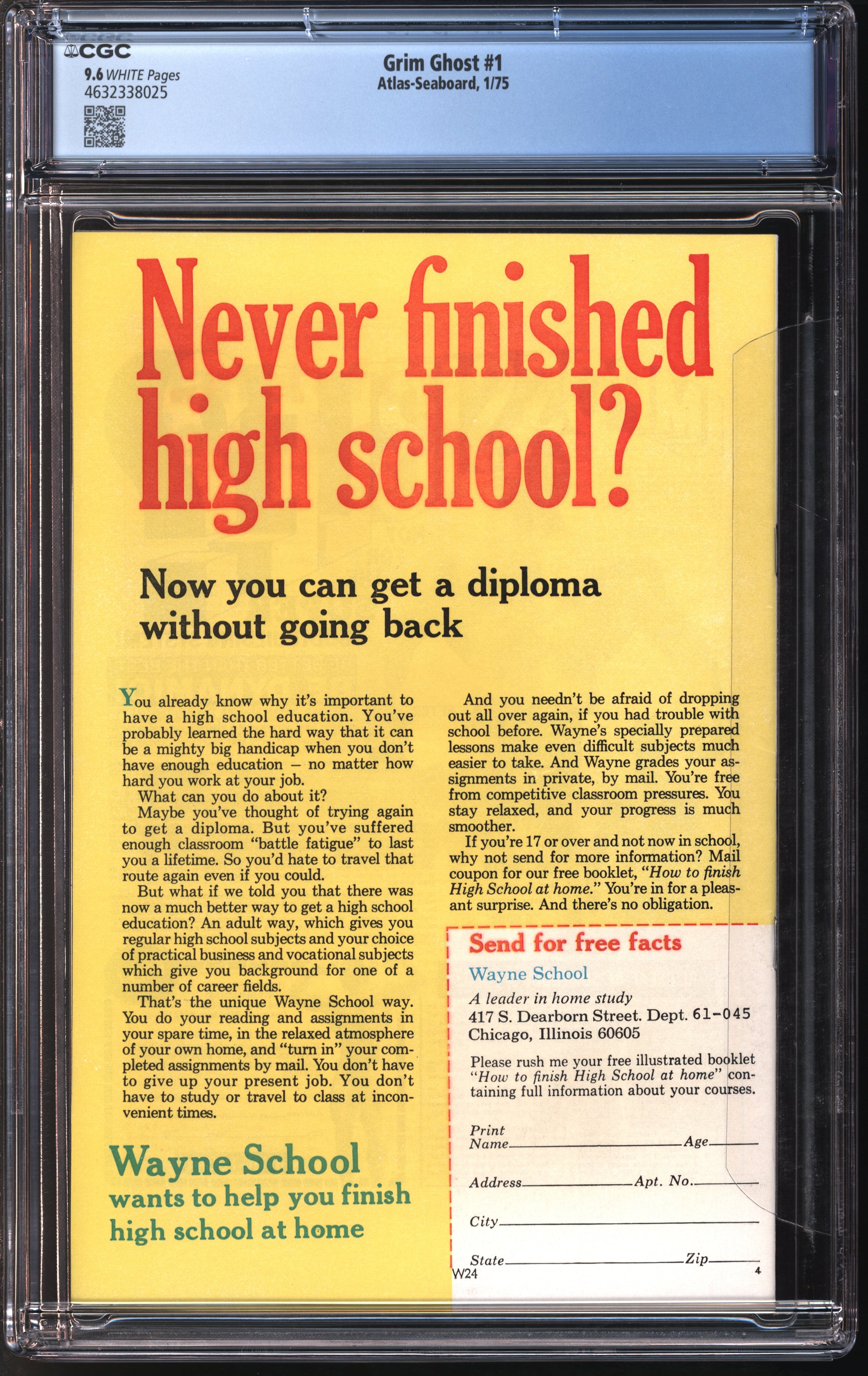 Atlas-Seaboard Grim Ghost #1 1/75 CGC 9.6 White Pages