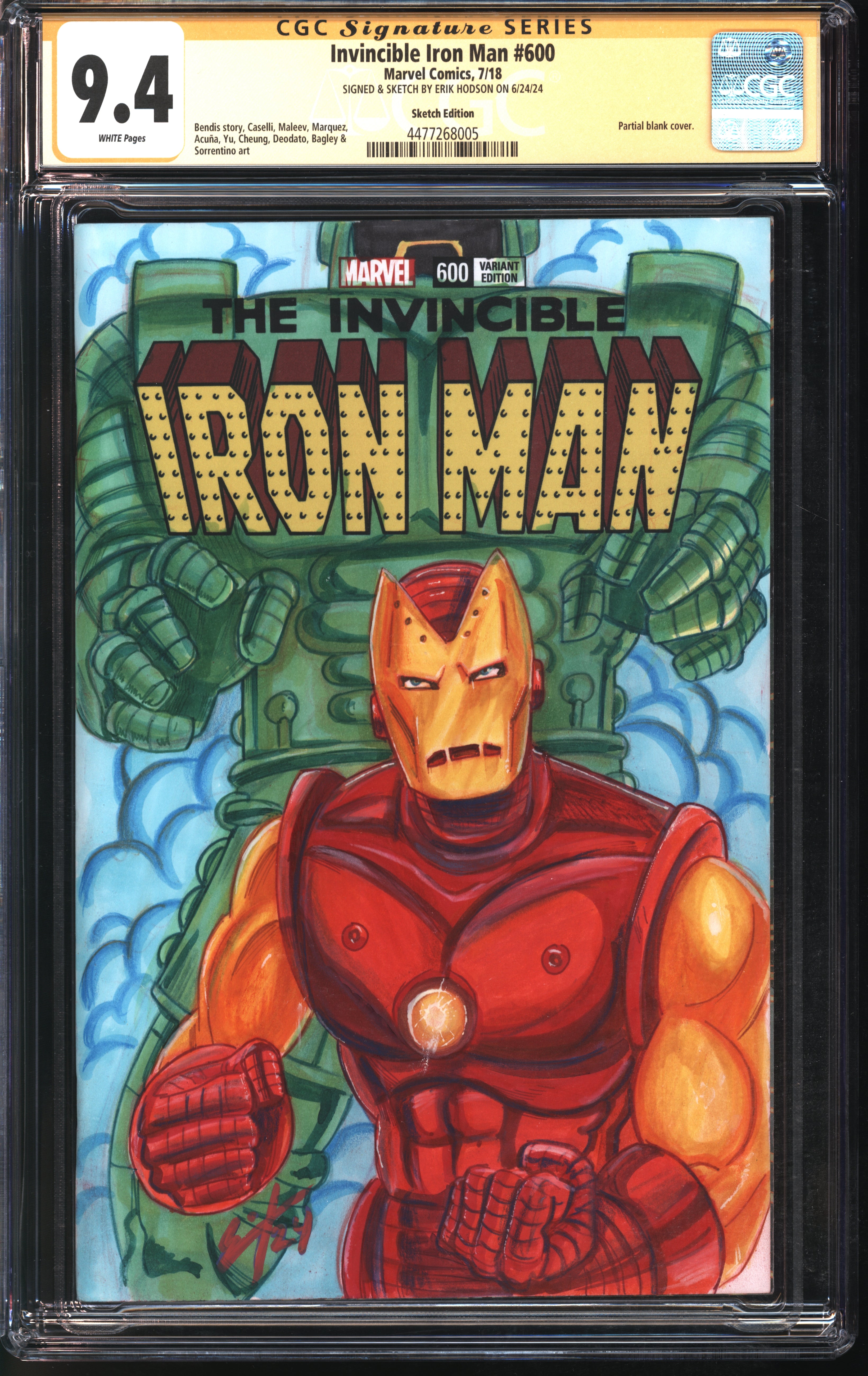 Invincible Iron Man 600 Sketch Edition. Featuring Classic Iron Man and Titanium Man drawn by Erik Hodson in Marker, Color Pen, and Color Pencil.