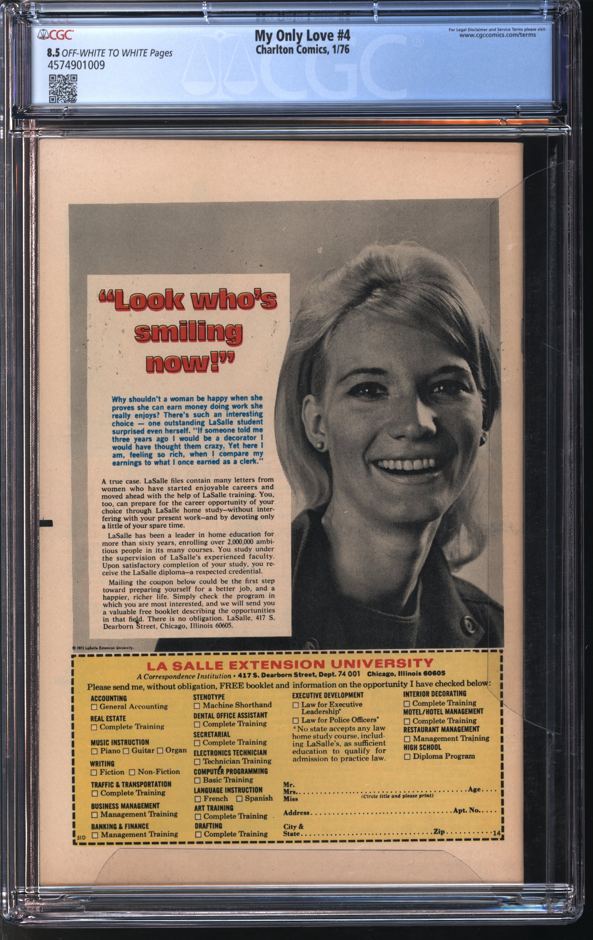 Charlton Comics My Love #4 1/76 CGC 8.5 Off-White to White Pages