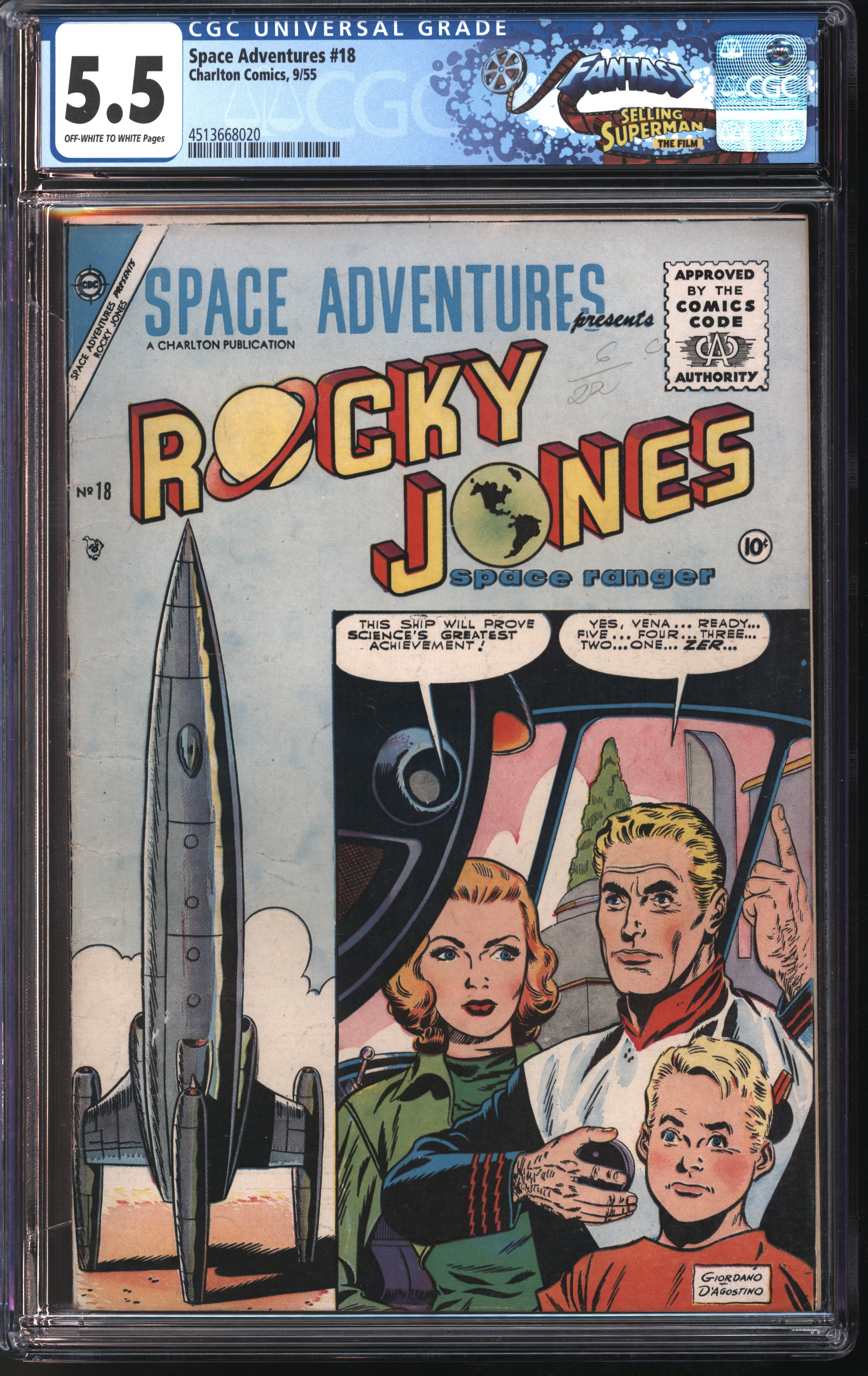 Charlton Comics Space Adventures #18 9/55 FANTAST CGC 5.5 Off-White to White Pages