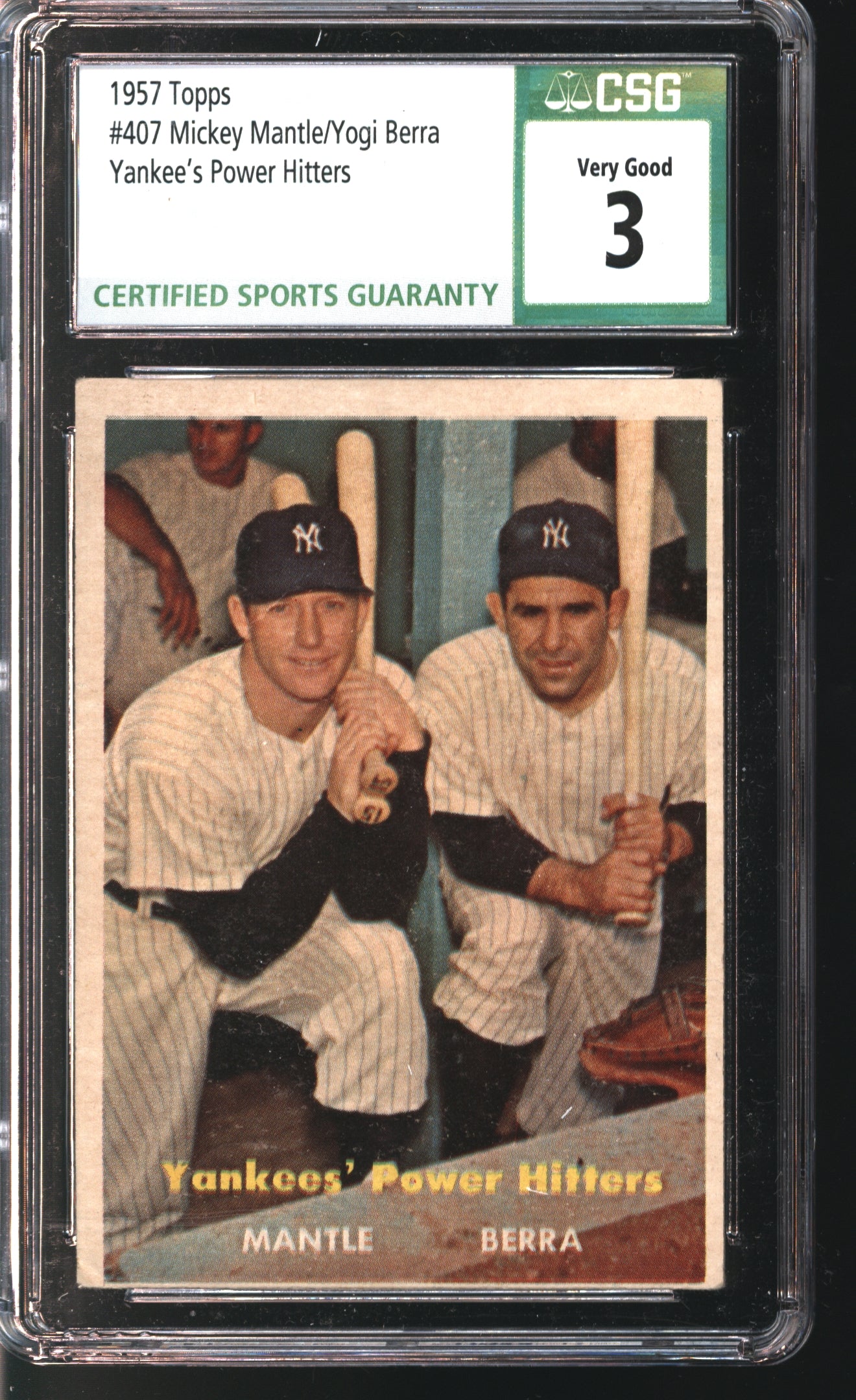 1957 Topps Mickey Mantle/Yogi Berra Power Hitters # 407 Graded CSG 3