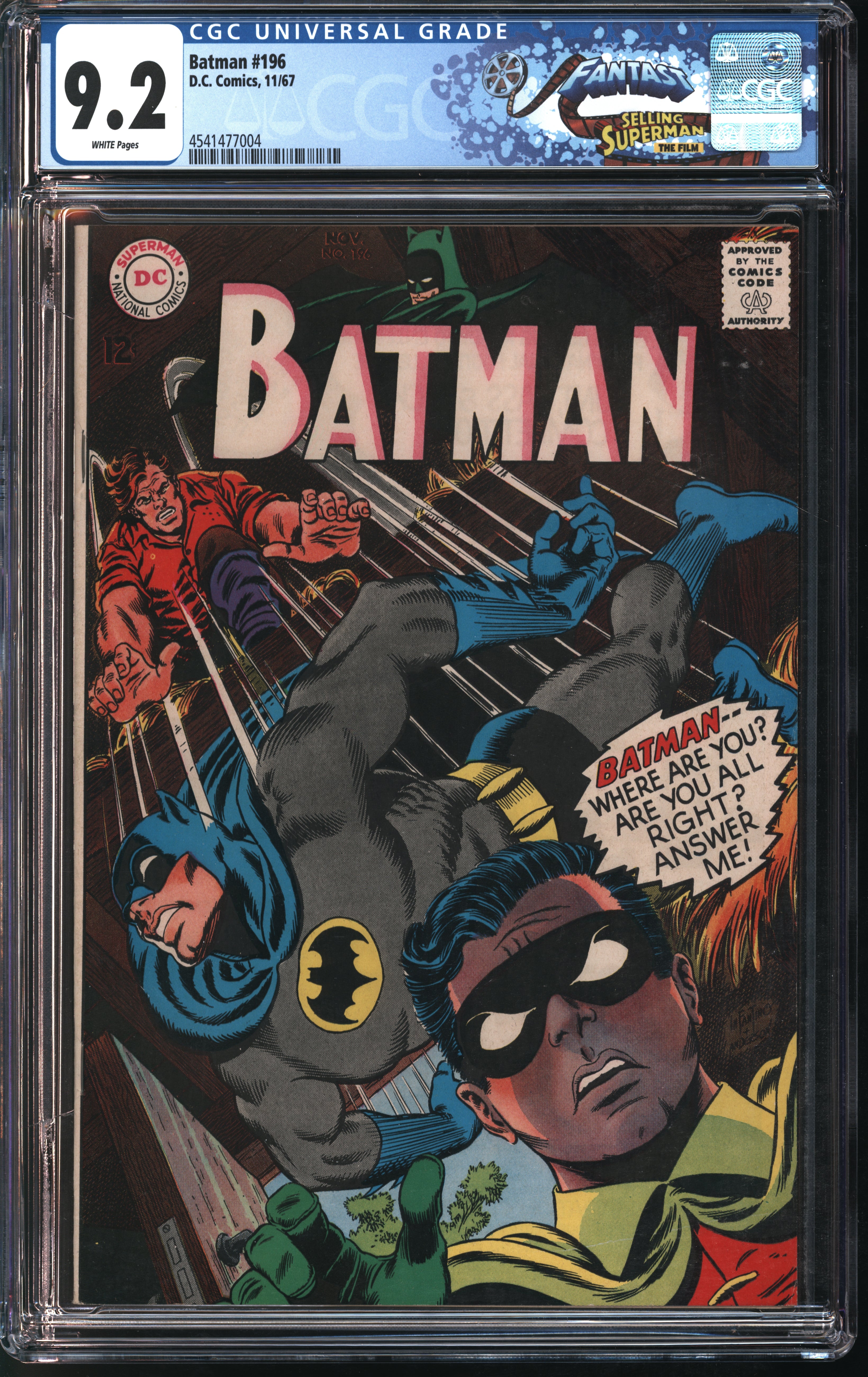D.C. Comics Batman #196 11/67 FANTAST CGC 9.2 White Pages