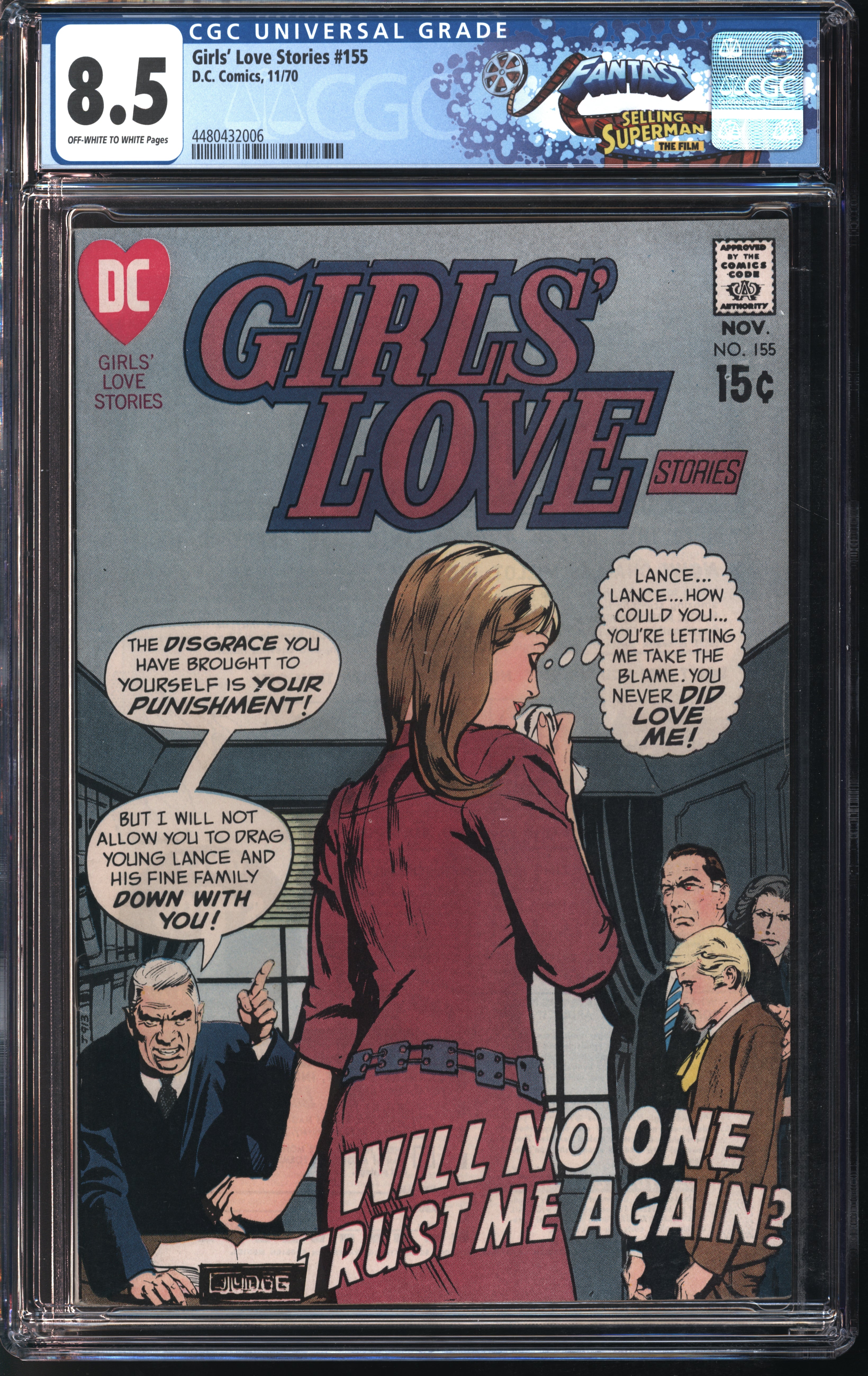 D.C. Comics Girls' Love Stories #155 11/70 FANTAST CGC 8.5 Off-White to White Pages