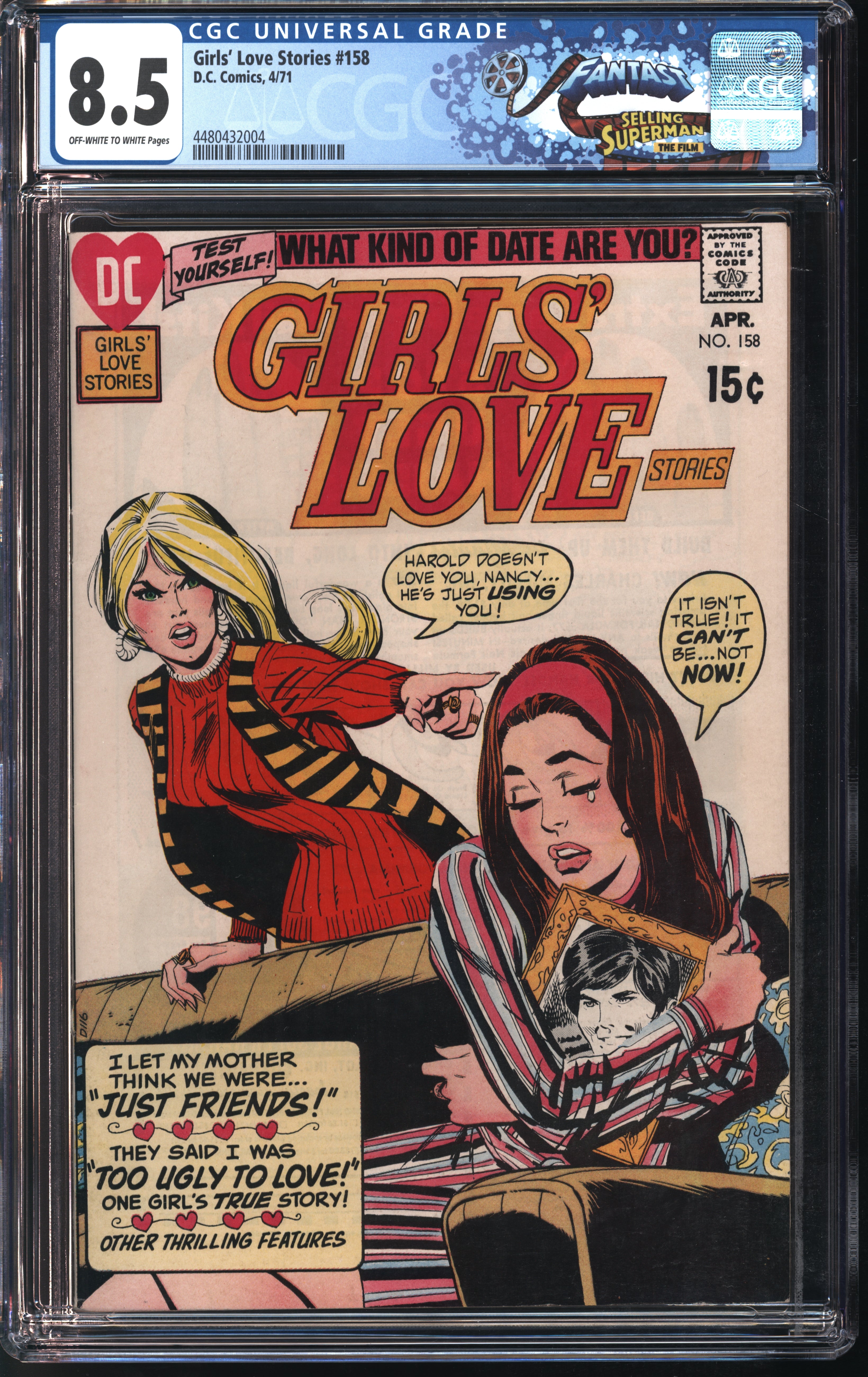 D.C. Comics Girls' Love Stories #158 4/71 FANTAST CGC 8.5 Off-White to White Pages