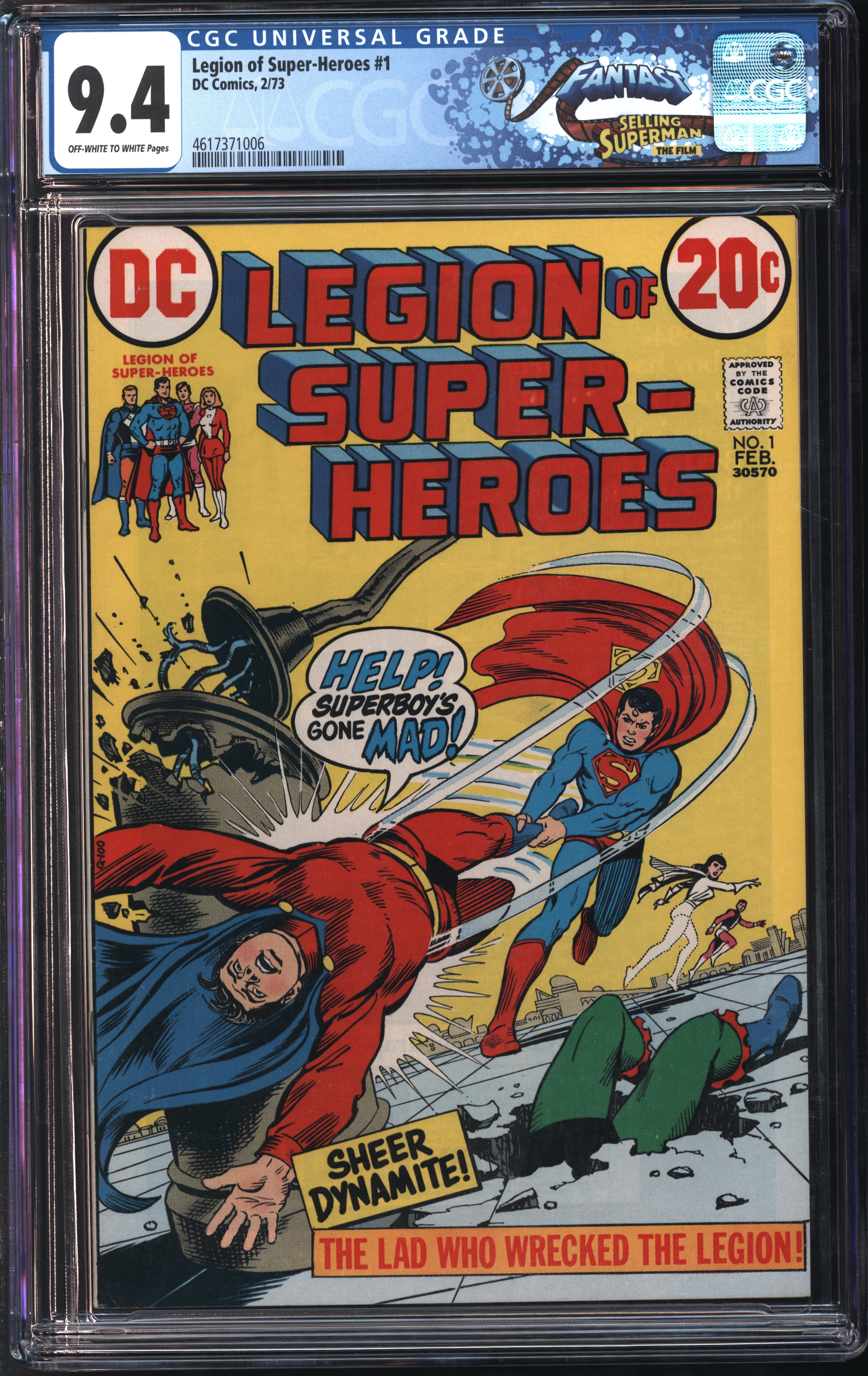 D.C. Comics Legion of Super-Heroes #1 2/73 FANTAST CGC 9.4 Of-White to White Pages