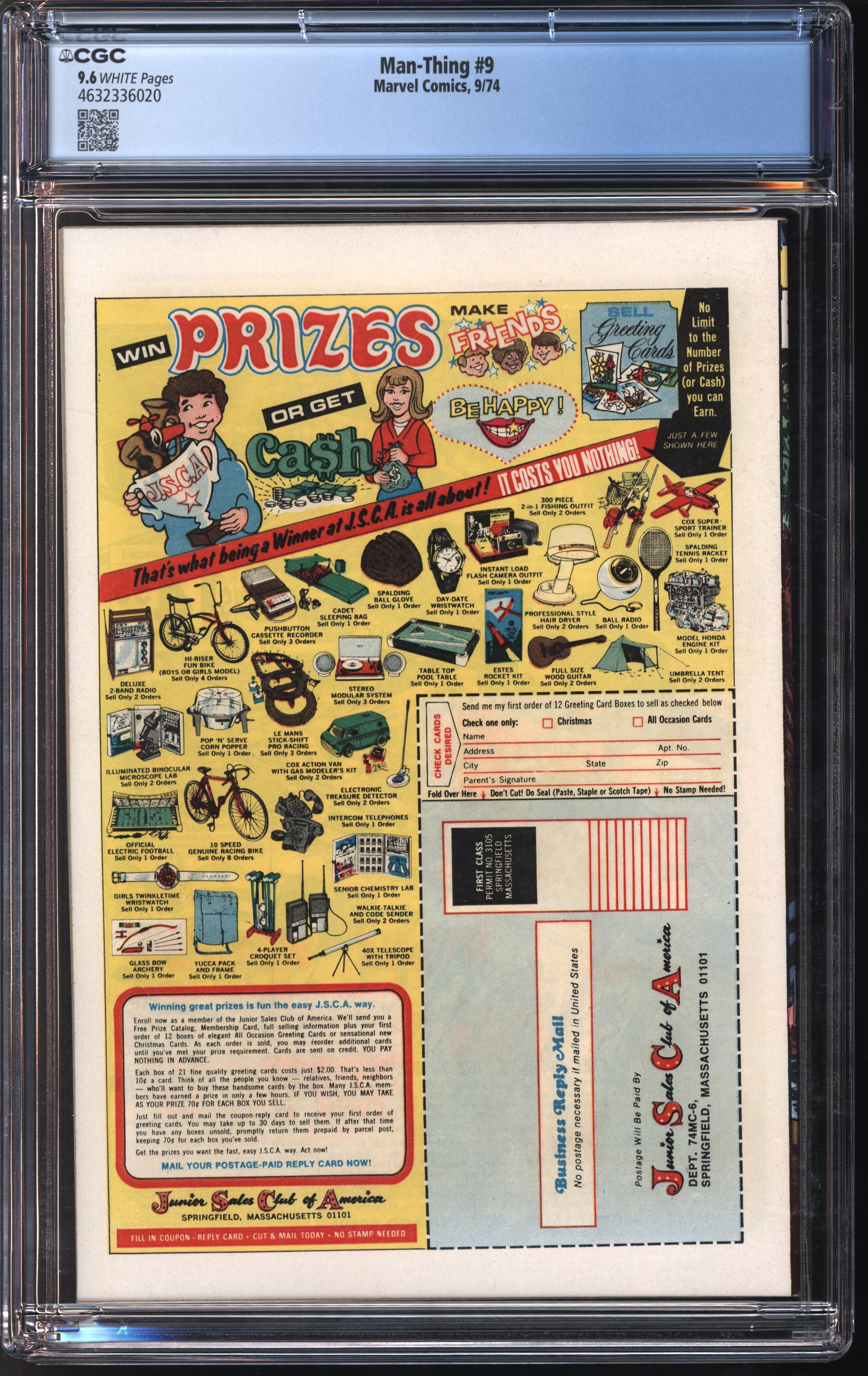 Marvel Comics Man-Thing #9 9/74 CGC 9.6 White Pages