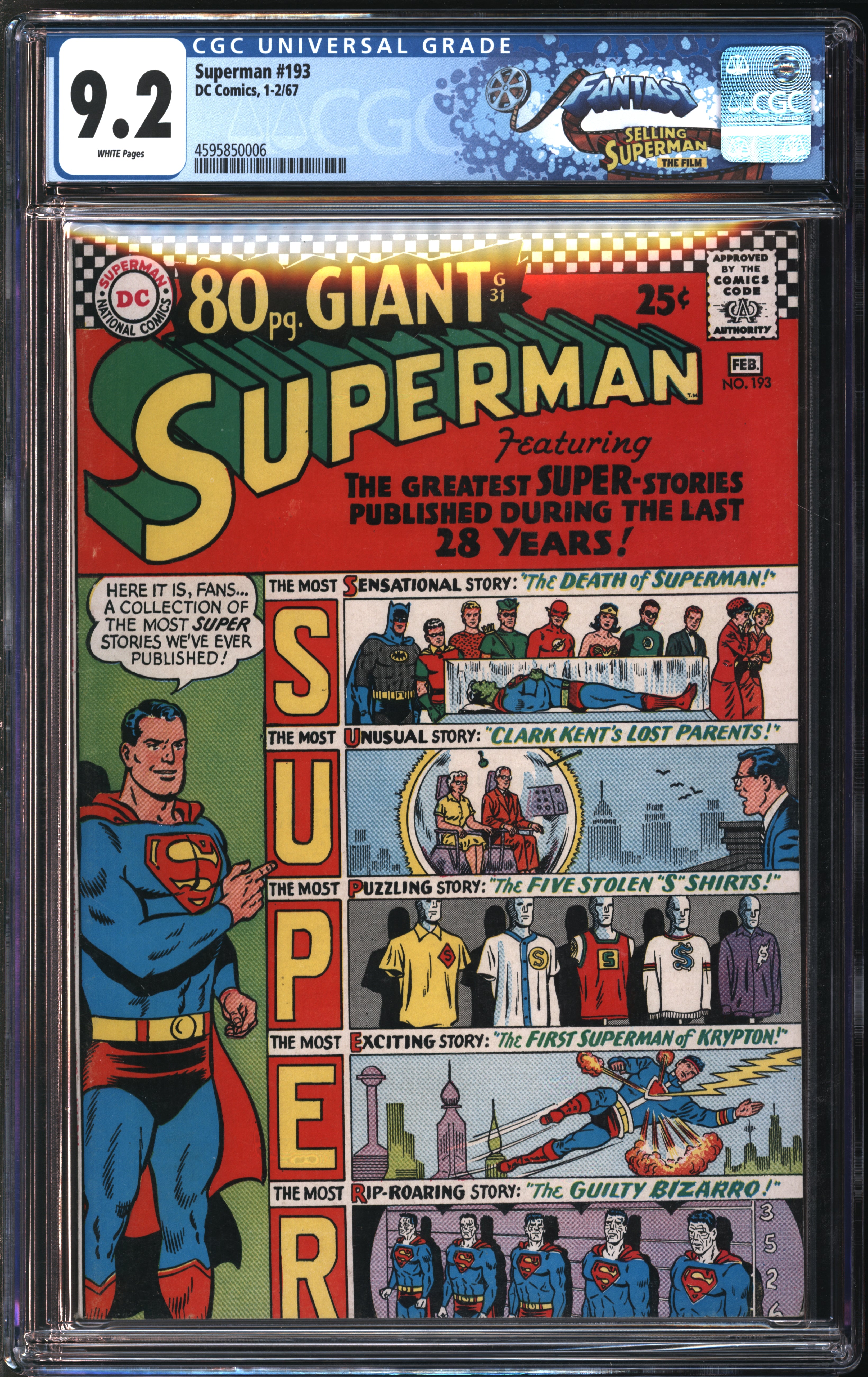 D.C. Comics Superman #193 1-2/67 FANTAST CGC 9.2 White Pages