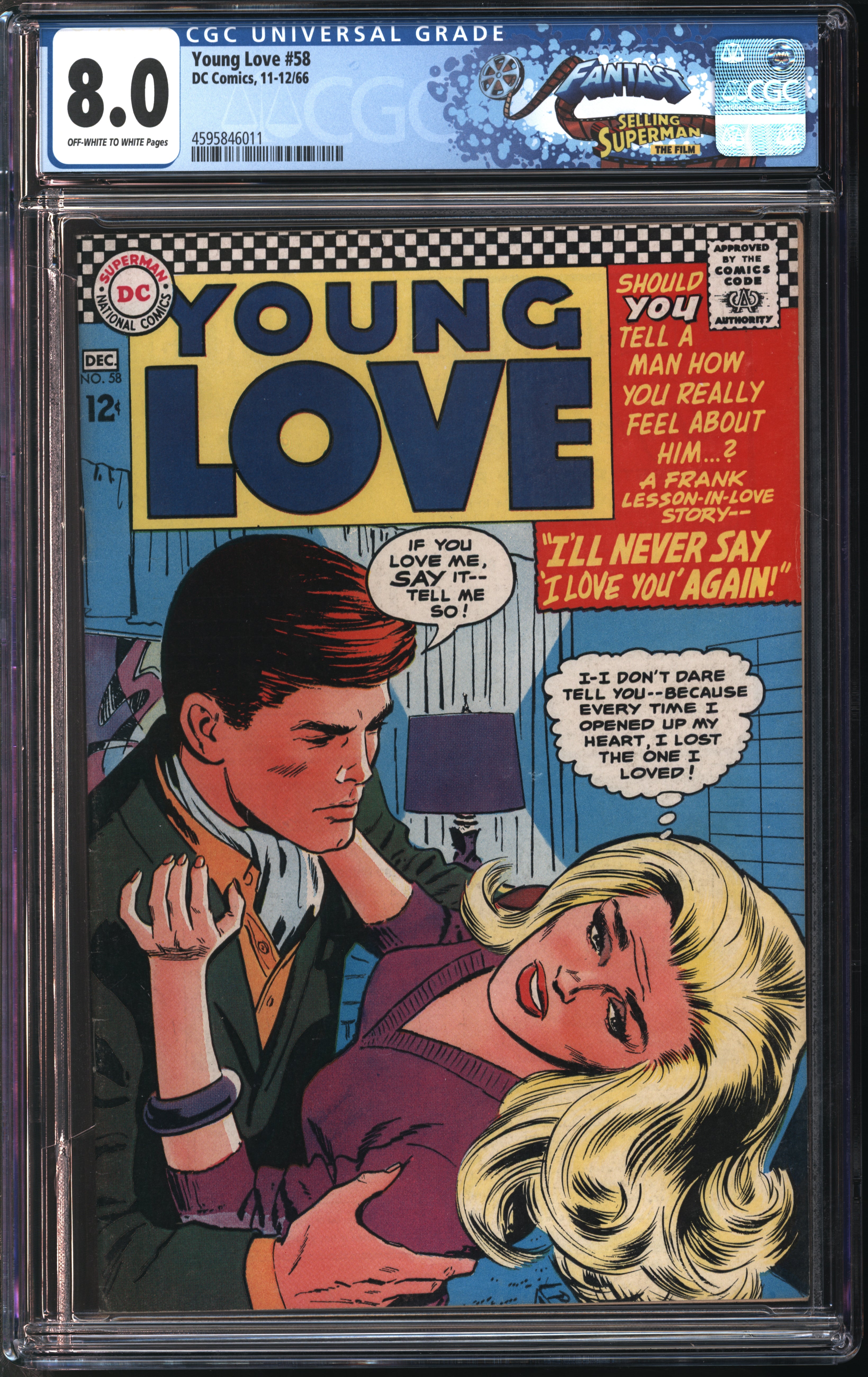D.C. Comics Young Love #58 11-12/66 FANTAST CGC 8.0 Off-White to White Pages