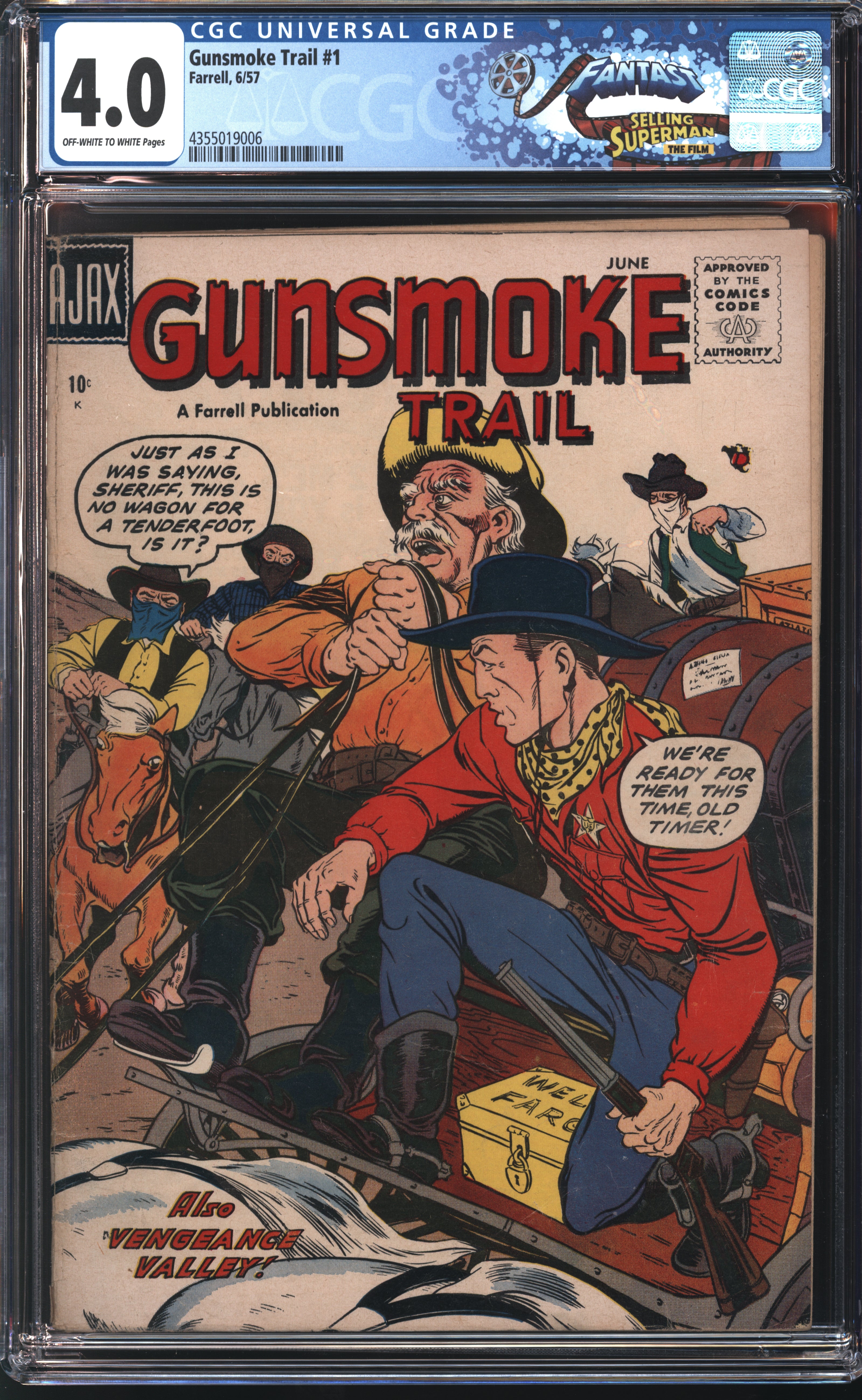 Farrell/Ajax Comics Gunsmoke Trail #1 6/57 FANTAST CGC 4.0 Off White to White Pages