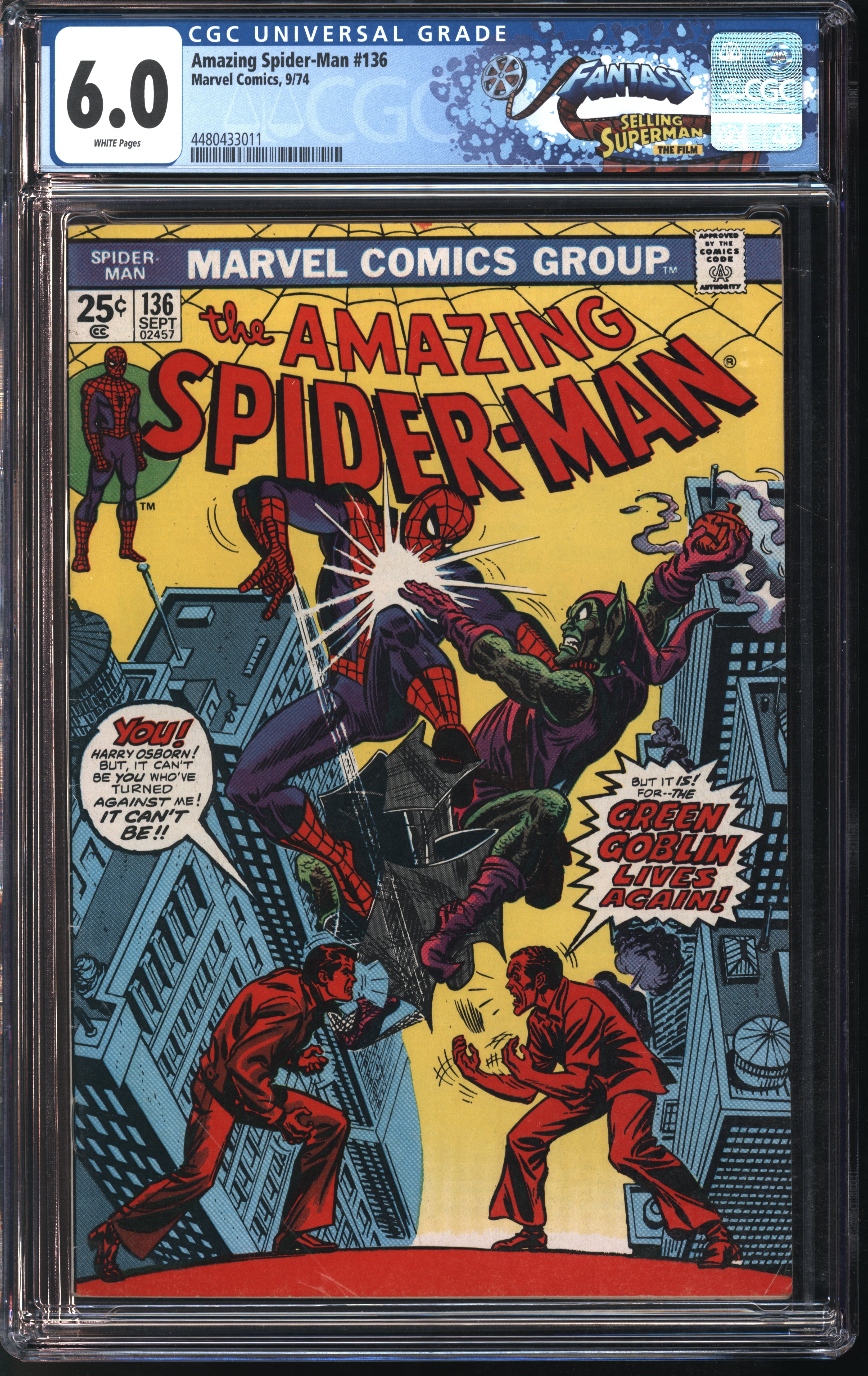Marvel Comics Amazing Spider-Man #136 9/74 FANTAST CGC 6.0 White Pages