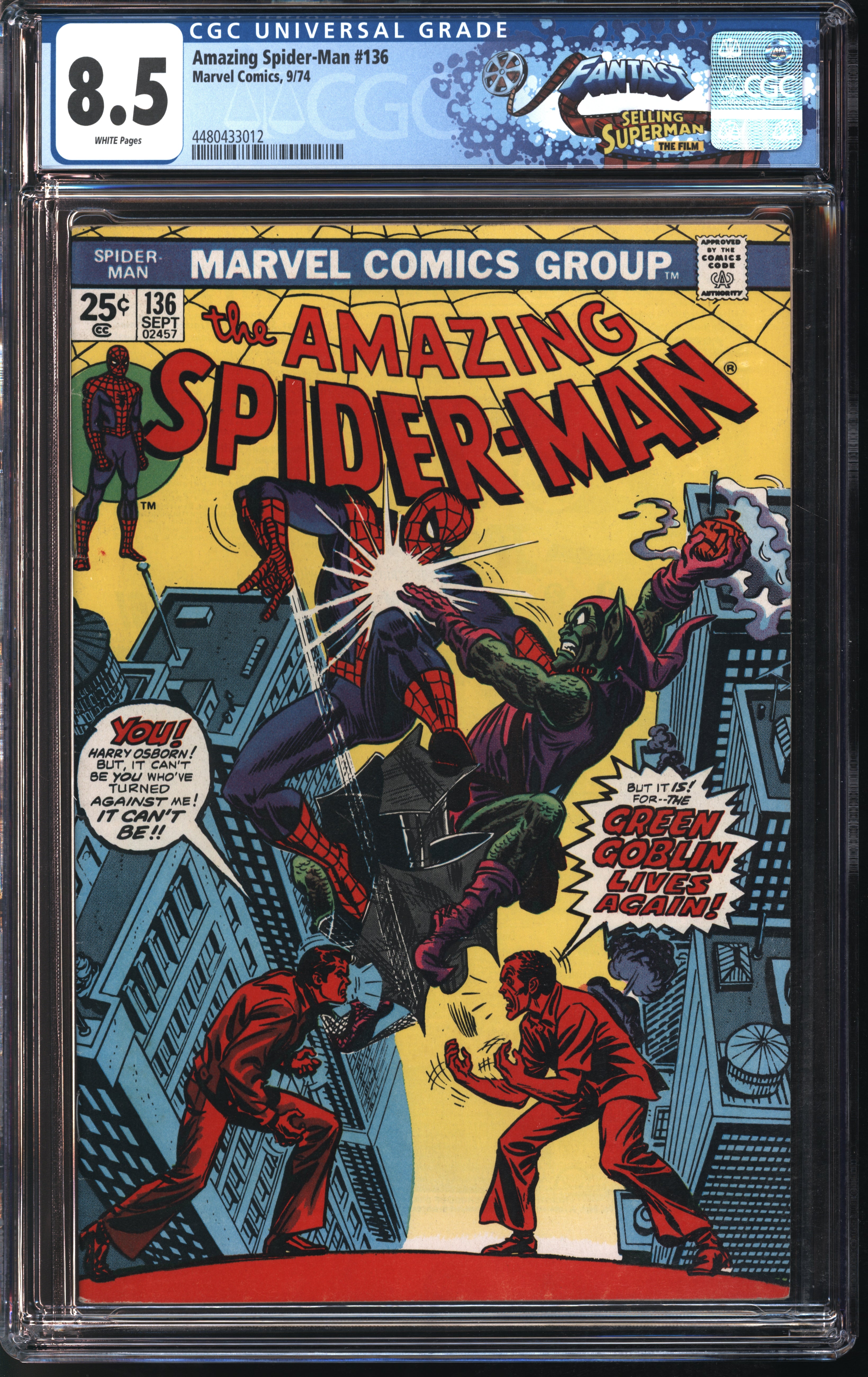Marvel Comics Amazing Spider-Man #136 9/74 FANTAST CGC 8.5 White Pages