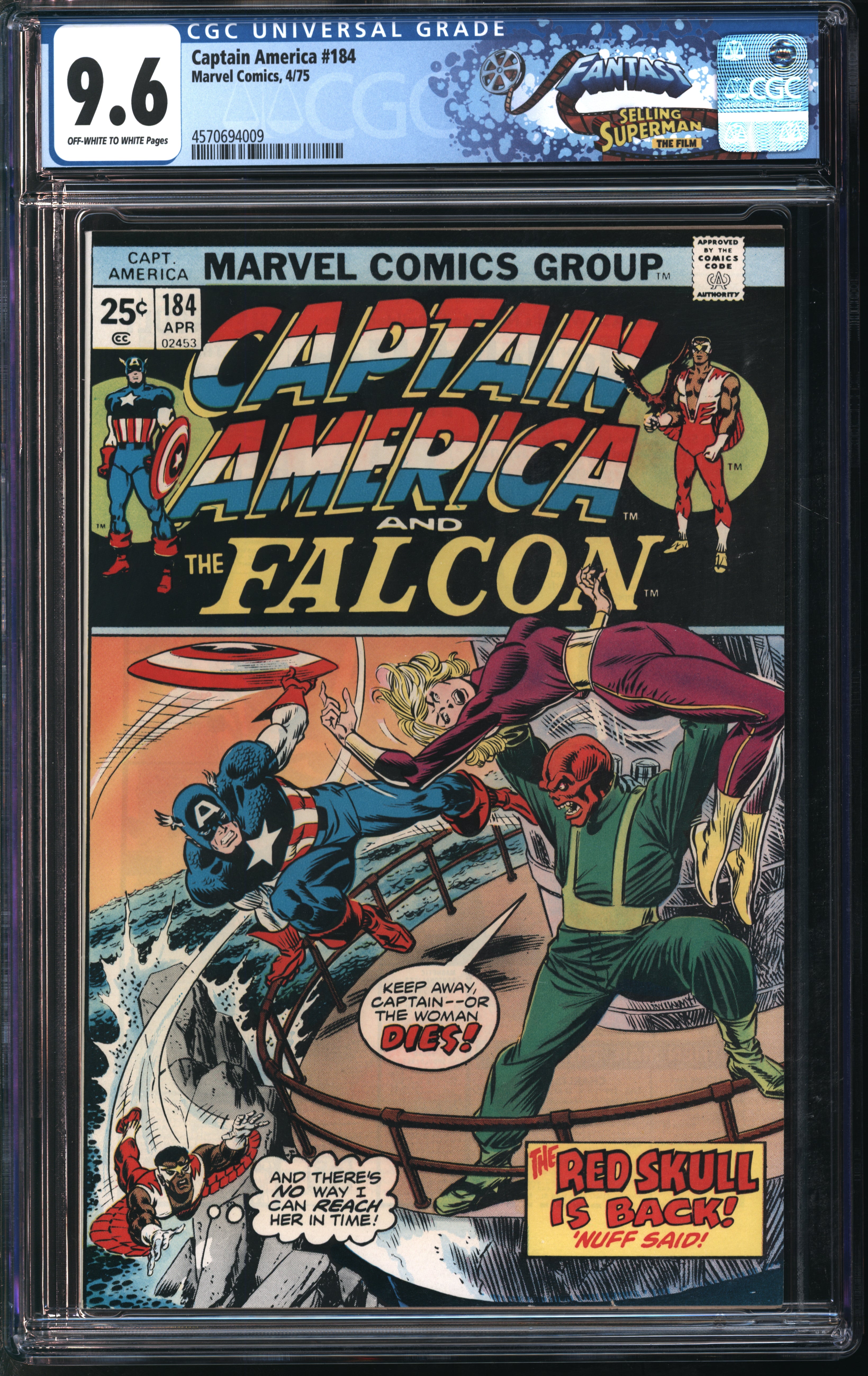 Marvel Comics Captain America #184 4/75 FANTAST CGC 9.6 Off-White to White Pages