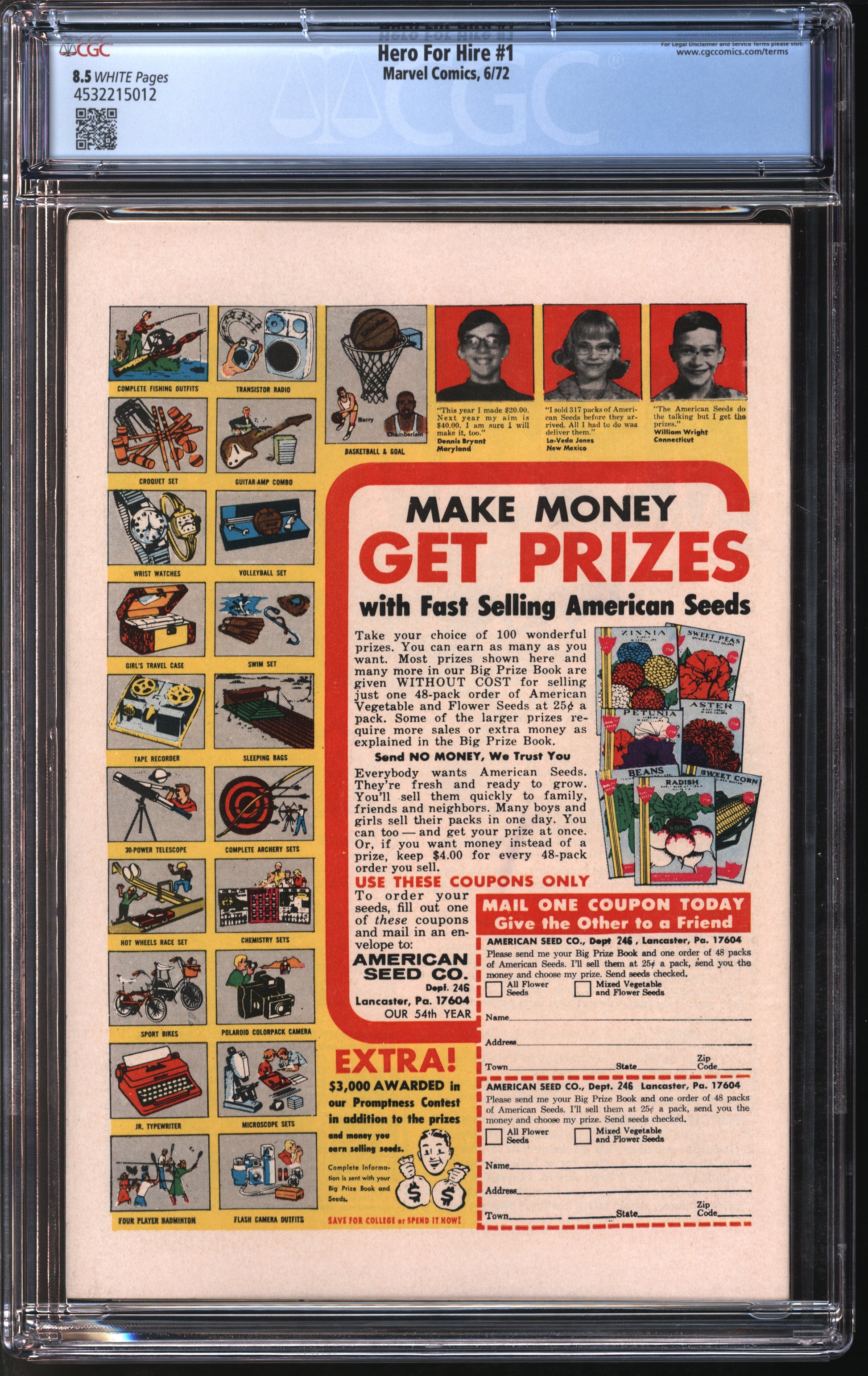 Marvel Comics Hero for Hire #1 6/72 CGC 8.5 White Pages