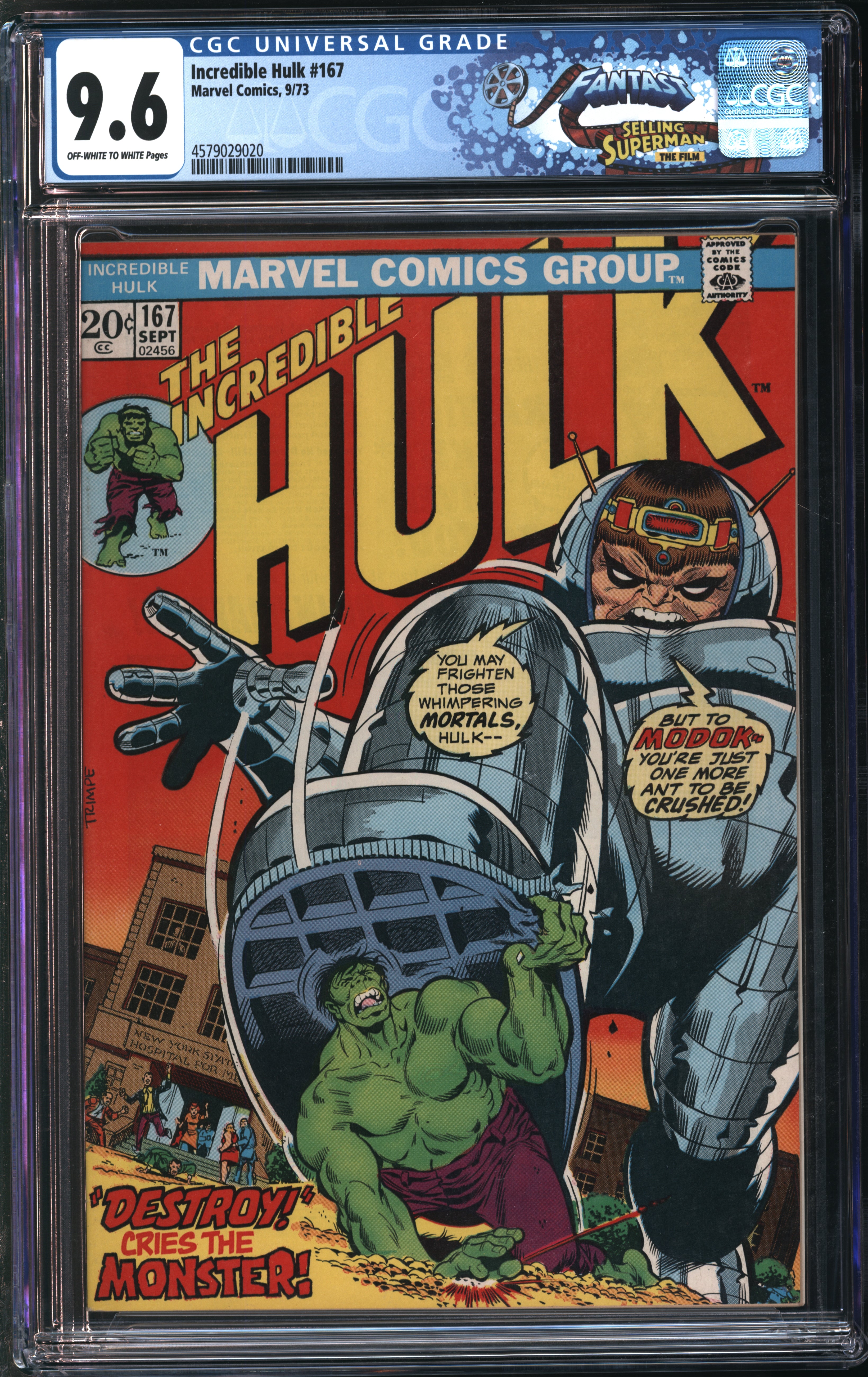 Marvel Comics Incredible Hulk #167 9/73 FANTAST CGC 9.6 Off-White to White Pages