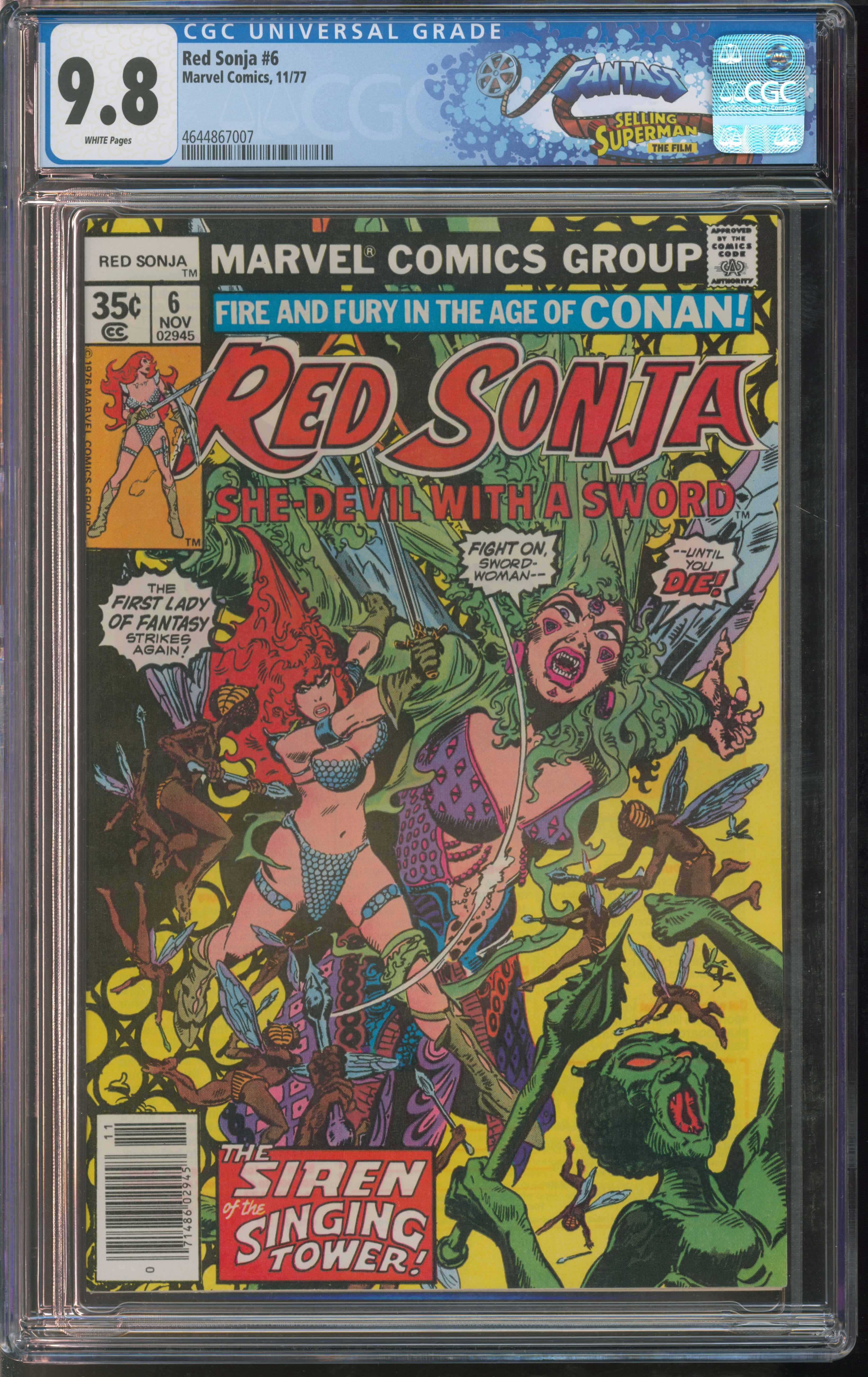Marvel Comics Red Sonja #6 11/77 FANTAST CGC 9.8 White Pages