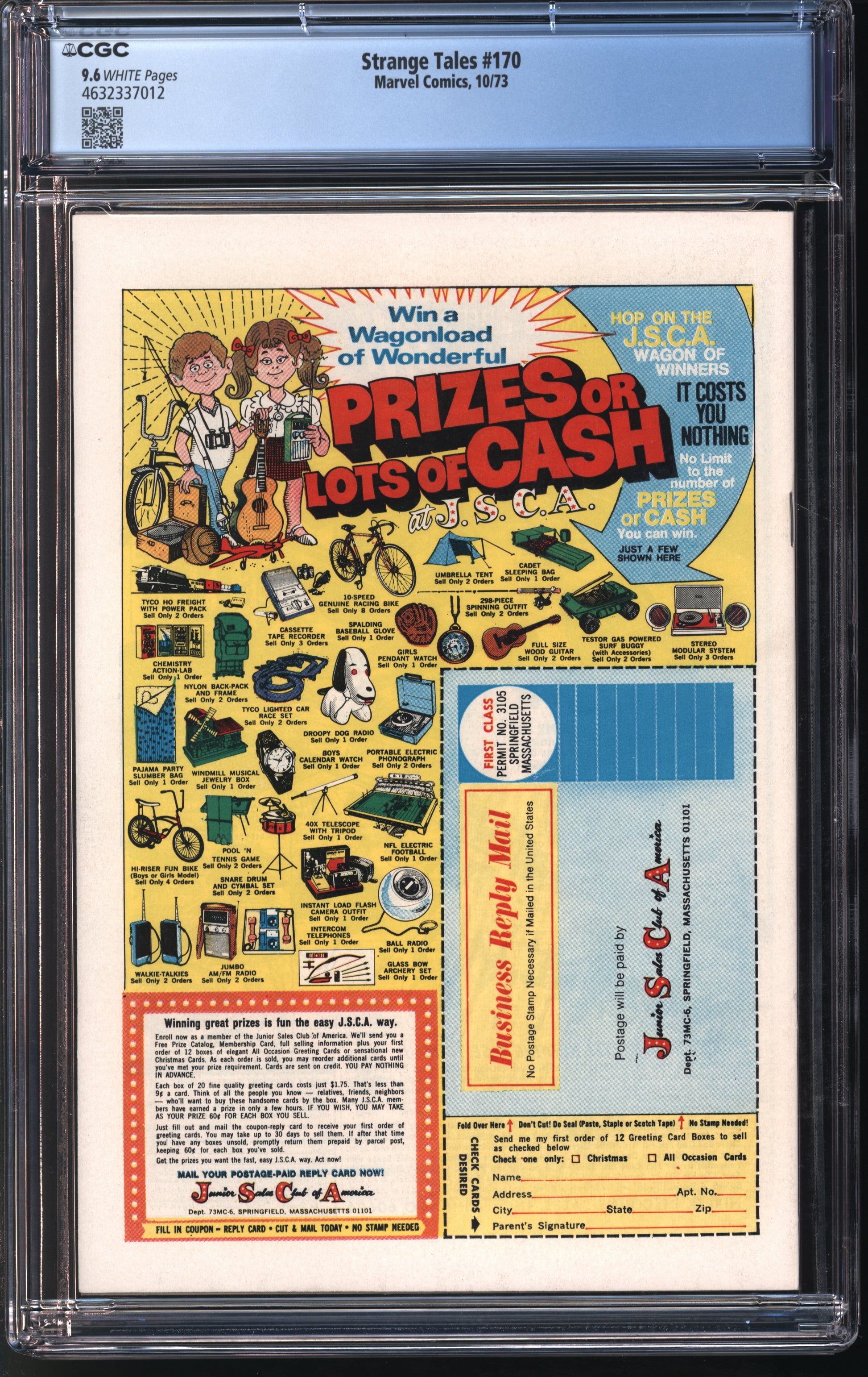 Marvel Comics Strange Tales #170 10/73 FANTAST CGC 9.6 White Pages