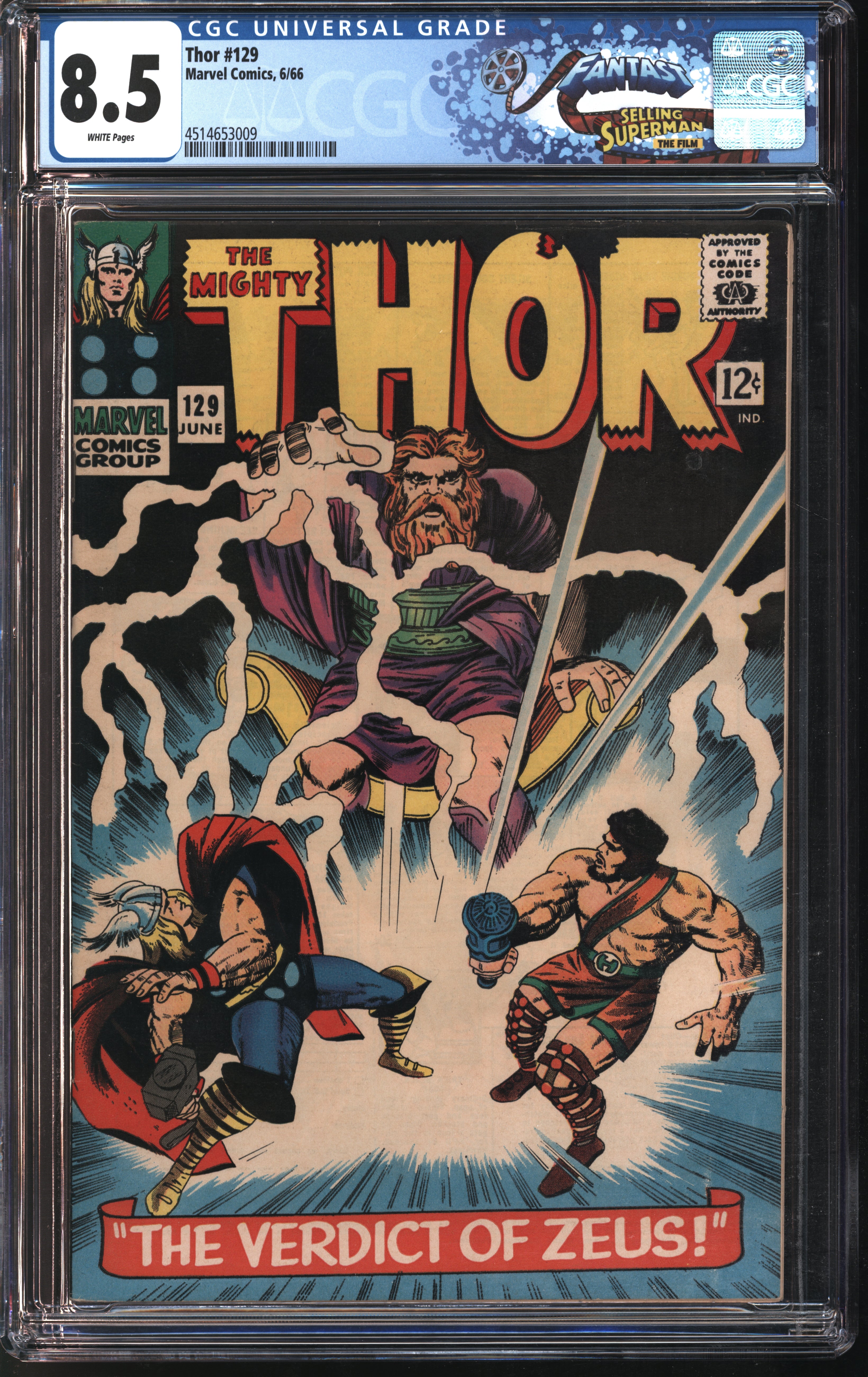 Marvel Comics Thor #129 6/66 FANTAST CGC 8.5 White