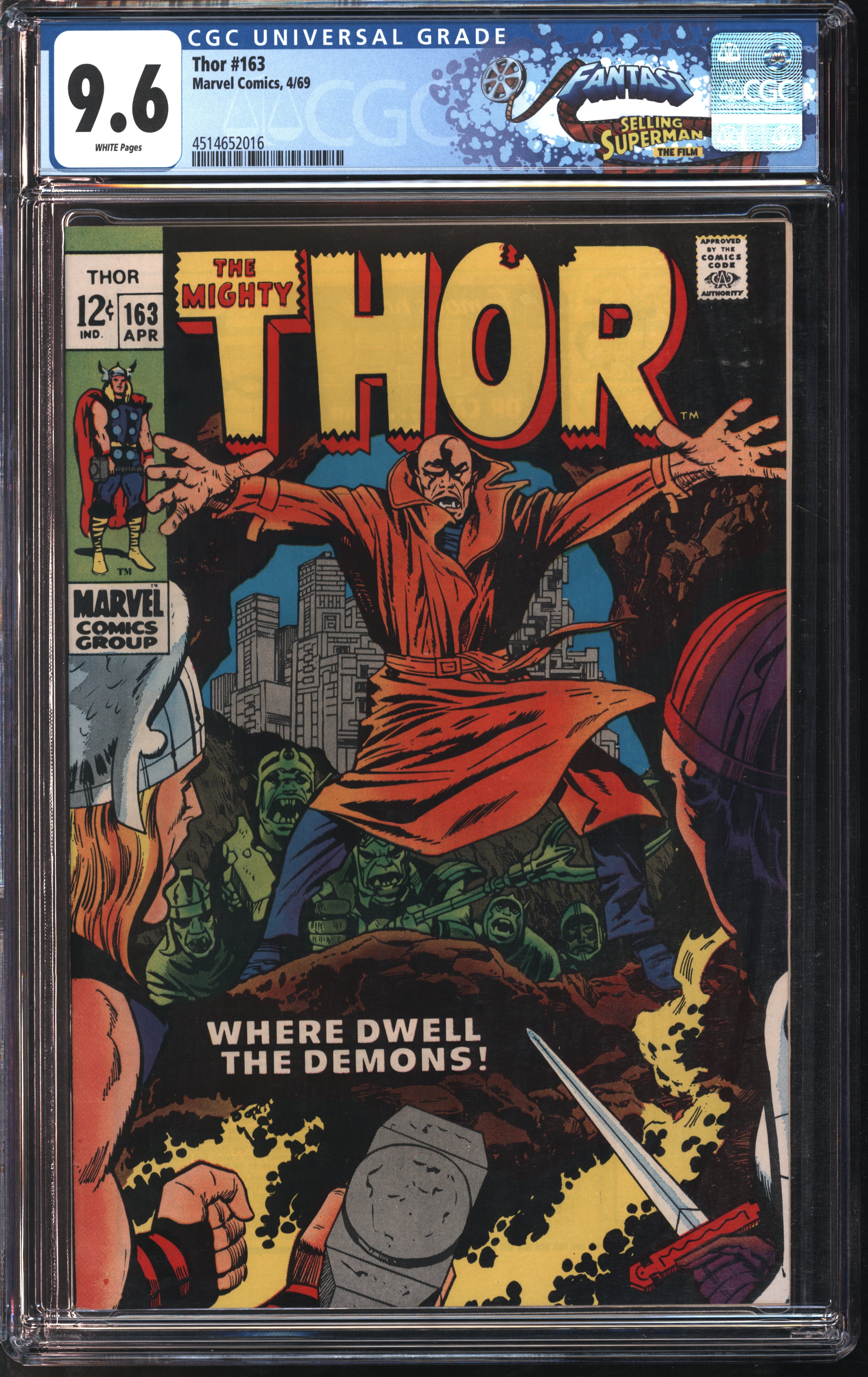 Marvel Comics Thor #163 4/69 FANTAST CGC 9.6 White Pages