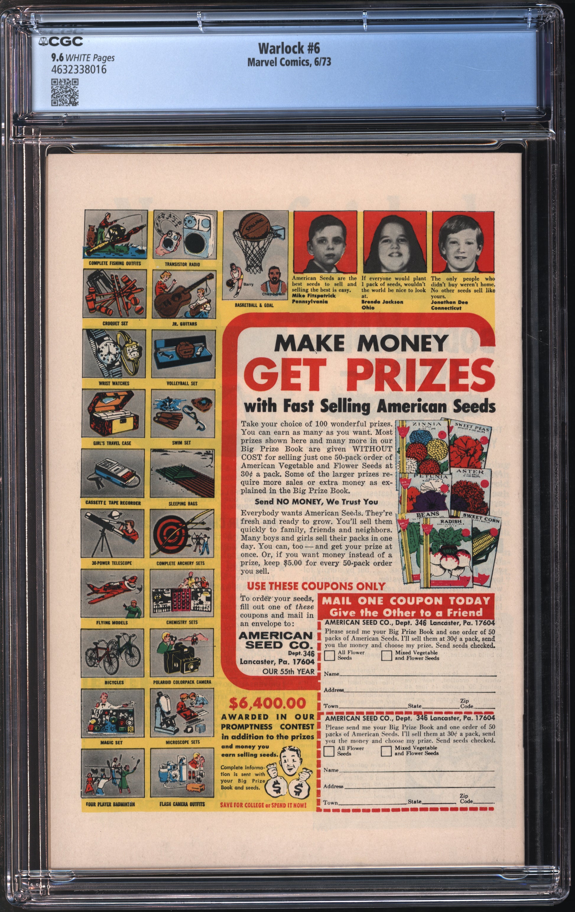 Marvel Comics Warlock #6 6/73 CGC 9.6 White Pages