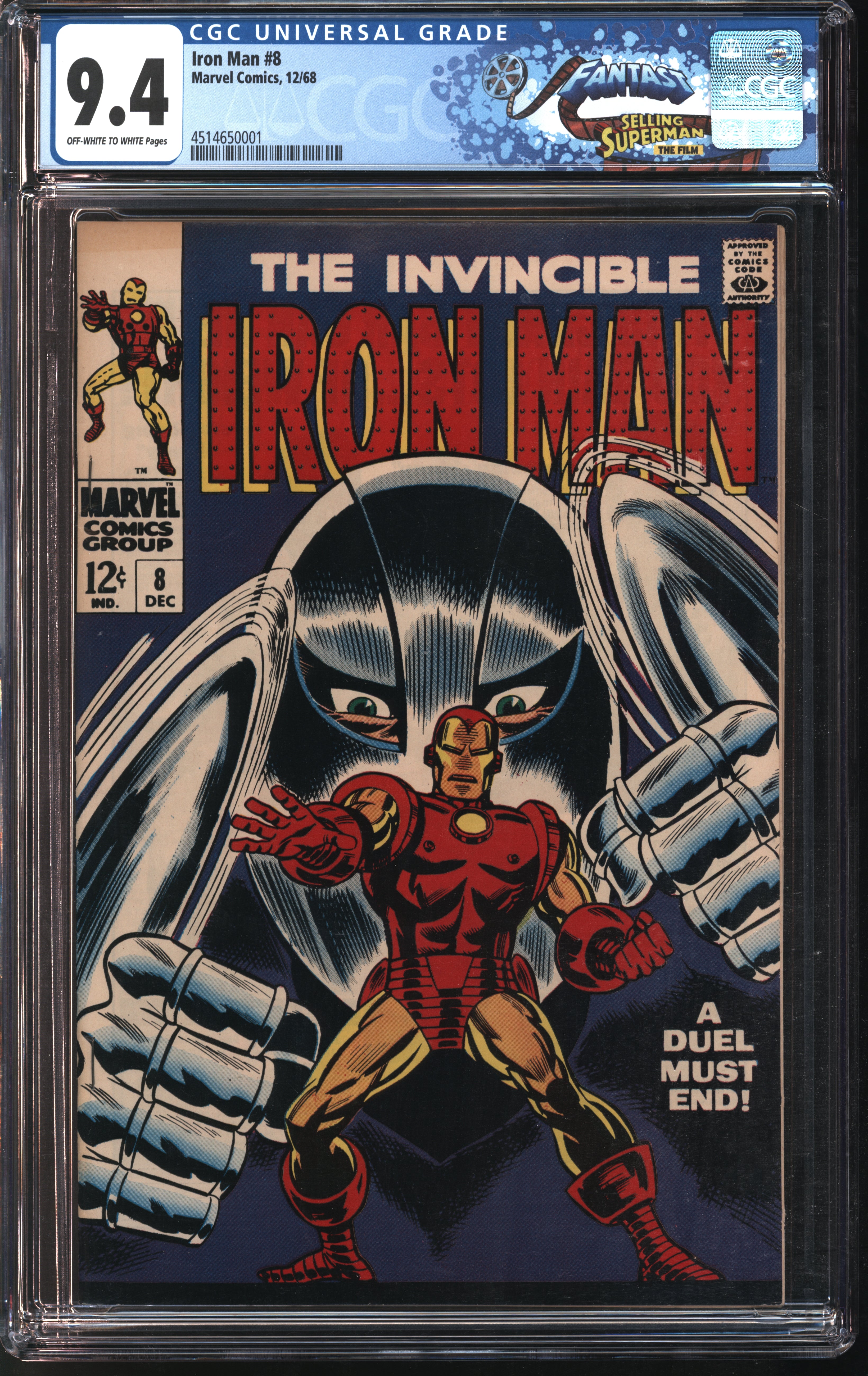 Marvel Iron Man #8 12/68 FANTAST CGC 9.4 Off-White to White Pages