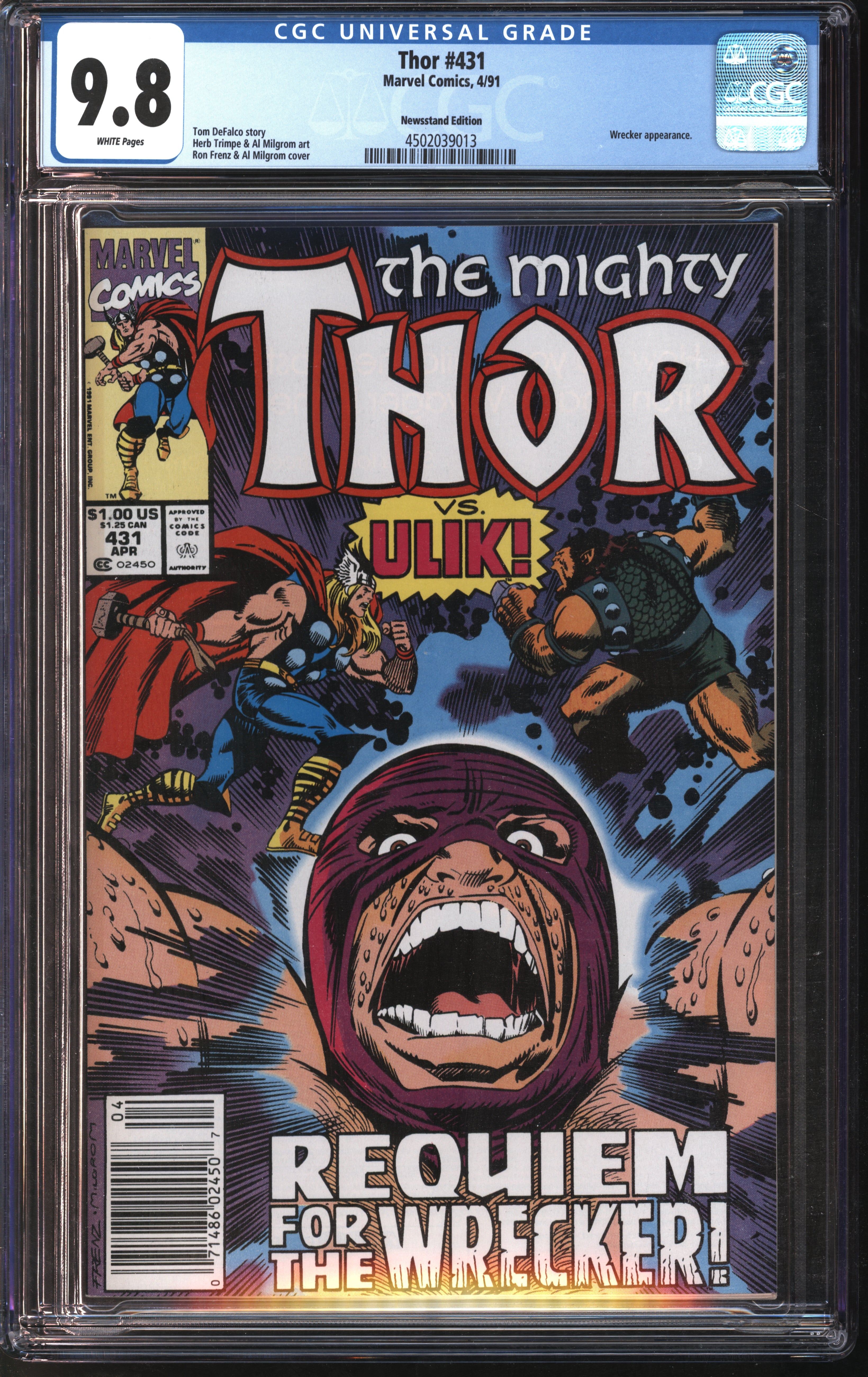 Marvel Thor 431 (Newsstand Edition) 4/91 CGC 9.8 White Pages