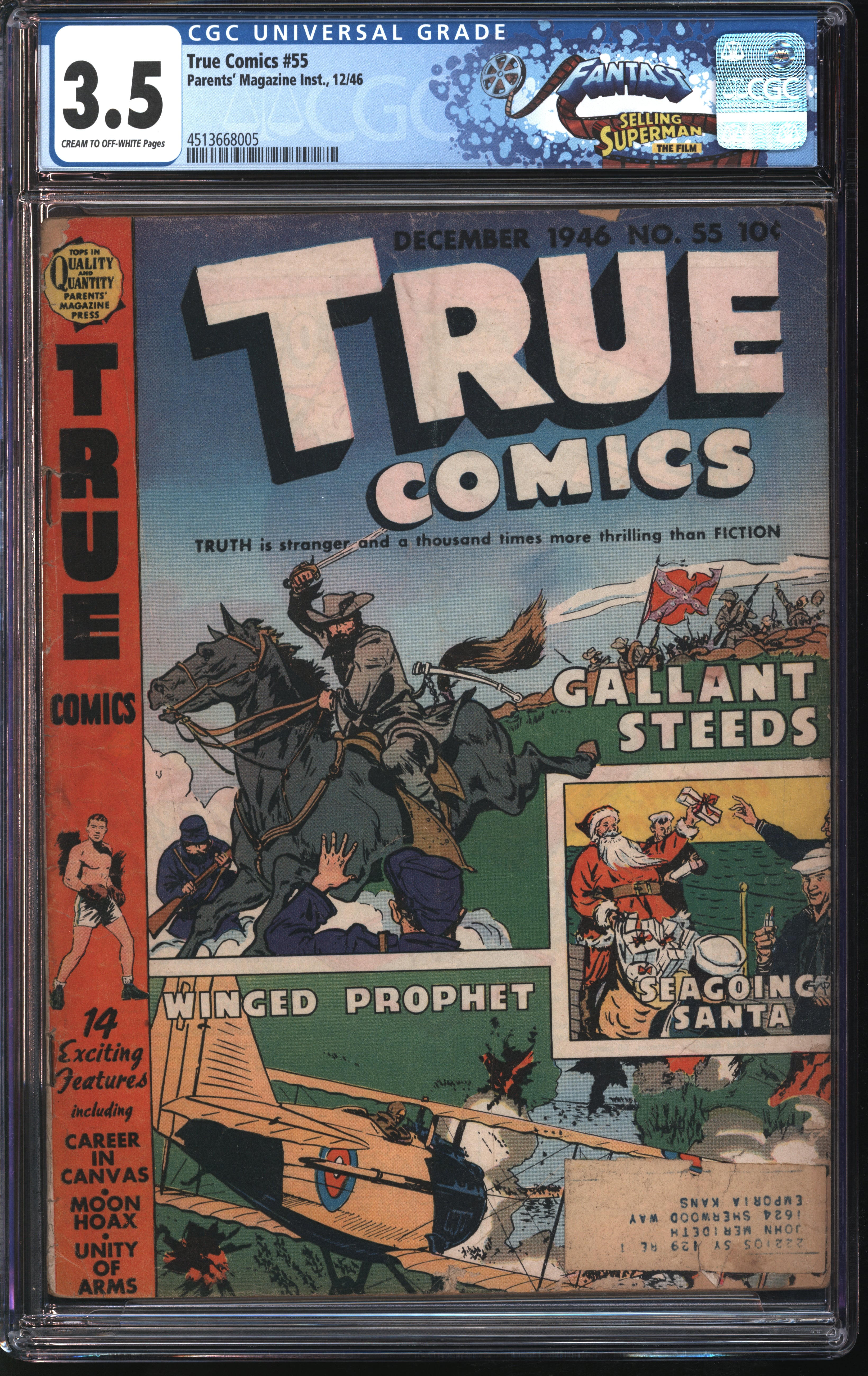 Parents' Magazine Inst. True Comics #55 12/46 FANTAST CGC 3.5 Cream to Off-White to Pages